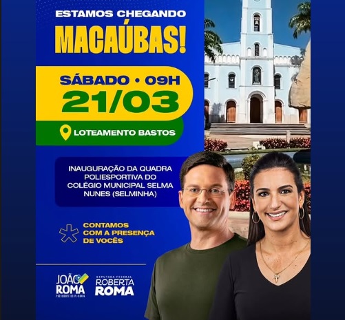 A cidade de Macaúbas viverá um sábado de grande movimentação política com a visita do ex-prefeito de Salvador e possível pré-candidato ao Governo da Bahia, ACM Neto, que chegará acompanhado do ex-ministro João Roma, da deputada federal Roberta Roma e de diversas lideranças políticas da região e do estado.