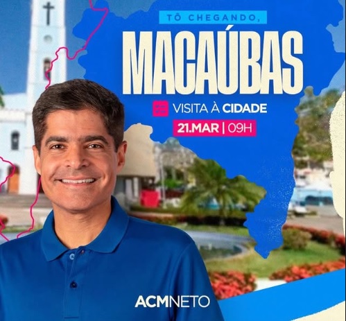 A cidade de Macaúbas viverá um sábado de grande movimentação política com a visita do ex-prefeito de Salvador e possível pré-candidato ao Governo da Bahia, ACM Neto, que chegará acompanhado do ex-ministro João Roma, da deputada federal Roberta Roma e de diversas lideranças políticas da região e do estado.