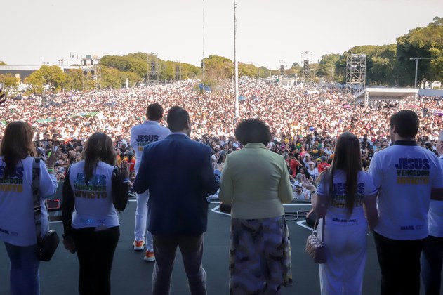 “Eu vim aqui dizer para vocês, a pedido do presidente, que, em Brasília, existem homens e mulheres que vivem para o Reino. Nós entendemos que nós estamos lá não pela nossa própria perna, e sim levantados por Deus para cumprir o propósito. Eu vim aqui dizer para vocês que o nosso povo quer paz, e nós vamos trabalhar pela paz”, declarou Messias.