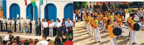 No mesmo local houve o hasteamento das bandeiras com a presença do Prefeito Municipal Dr. Carlos Roberto Souto Batista, o Vice-Prefeito Dr. Paulo Azevedo, o Presidente da Câmara Municipal de Vereadores Ilídio de Castro e o Major PM Jorge Brito Macedo – Comandante da 46ª CIPM. Os Vereadores e Secretários Municipais também participaram do ato que foi abrilhantado pela Filarmônica Maestro Lindembergue Cardoso, responsável pela execução do Hino Nacional Brasileiro.