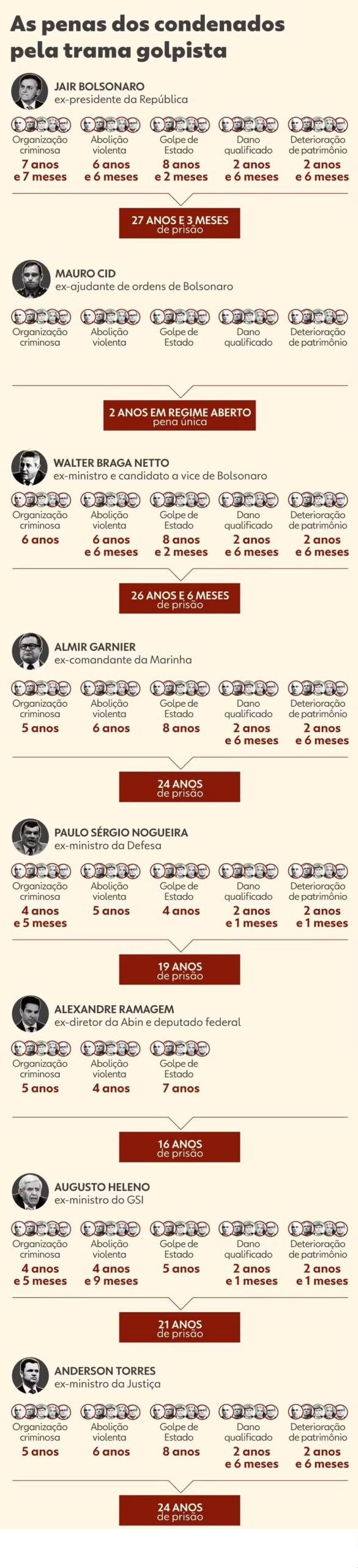 VEJA DETALHES DAS PENAS DE CADA UM DOS QUE FORAM CONDENADOS: