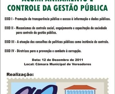 Diversas Livramento N. Senhora admin 14 anos atrás LIVRAMENTO SEDIARÁ CONFERÊNCIA SOBRE TRANSPARÊNCIA E CONTROLE SOCIAL