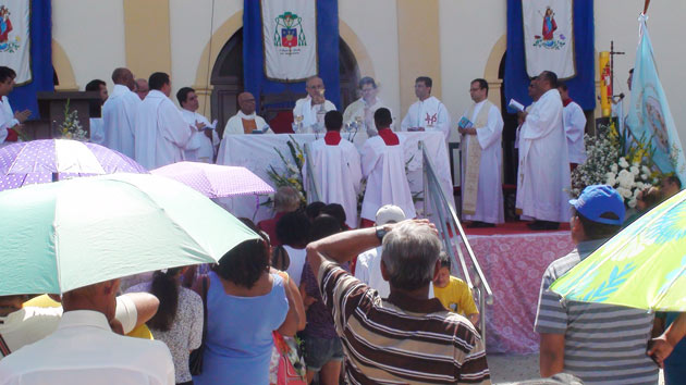 O bispo D. Armando Bucciol presidiu, pela manhã, a celebração eucarística em louvor à padroeira. Na sua homilia, fez o chamamento costumeiro: seguir o exemplo de entrega de Maria ao convite de Deus, “rever nossa maneira de viver e reavaliar nossa fé”. “Maria aponta para a pátria definitiva e é para lá que caminhamos”, disse. Pediu que o encontro naquela praça nos inspirasse a levar “simplicidade, generosidade e alegria” para nosso cotidiano.