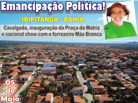 O ponto culminante dos festejos em homenagem a Ibipitanga, acontecerá com o show do mais renomado forrozeiro da Bahia e um dos melhores do Brasil, Edigar Mão Branca e banda Foguete, que celebrarão em alto estilo este importante momento da vida do município, que é referencia no que tange a boa administração municipal e dinamismo no desenvolvimento socio econômico.