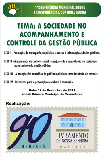 Diversas Livramento N. Senhora LIVRAMENTO SEDIARÁ CONFERÊNCIA SOBRE TRANSPARÊNCIA E CONTROLE SOCIAL admin 14 anos atrás