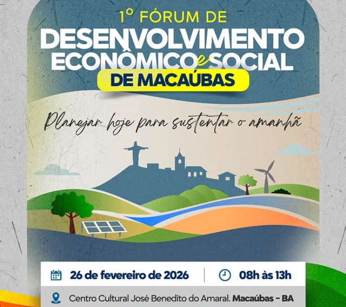 Com visão voltada para o futuro, Macaúbas se prepara para o Primeiro Fórum de Desenvolvimento Econômico e Social, marcado para 26 de fevereiro, no Centro Cultural José Benedito do Amaral. O encontro reunirá poder público, sociedade civil e setor produtivo para planejar ações nas áreas de desenvolvimento econômico local, sustentabilidade ambiental, inclusão social, geração de renda e governança digital.