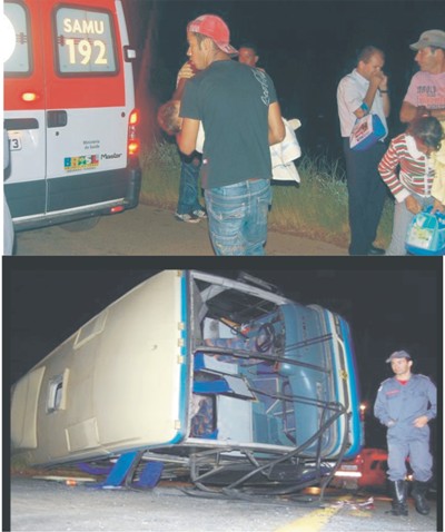 O motorista Edvaldo Araújo Dutra, de 27 anos, que dirigia um ônibus da Novo Horizonte, que levava 21 passageiros de Vitória da Conquista, na linha Bipitinga a São Paulo, dormiu no volante e derrapou na BR 365, km 380, próximo à cidade Patos de Minas, em Minas gerais, às 5 horas da manhã, desta quinta-feira (17). Todos os feridos, incluindo três crianças, foram levados pelos bombeiros e Serviço de Atendimento Médico de Urgência (SAMU) para o Hospital Regional em Patos de Minas.