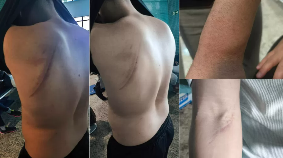 Deportados algemados pelos pés e mãos, mostraram fotos para reforçar a denúncia de agressão física. As imagens mostram lesões nas mãos, braços, peito e costas.