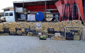Parte do material foi achado em um caminhão, durante abordagem policial, e também em carro de luxo dentro de um galpão na região. Dois foram presos.